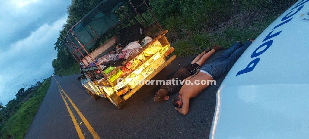 Al abordarlos, ubicaron dentro del camión cable de cobre que pertenece al ICE, por lo que de inmediato son aprehendidos. Al parecer lo habían sustraído de Cañas.