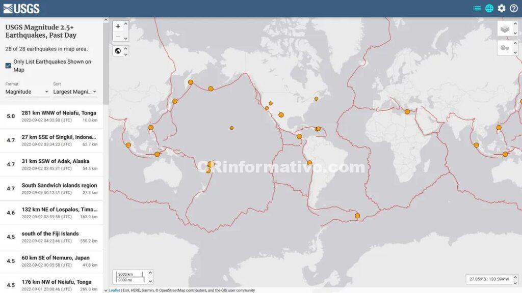 Como pueden ver en la imagen adjunta de USGS, el sismo de mayor magnitud de hoy (hasta el momento de esta publicación) es de M5.0 con epicentro en Tonga; también pueden ver otras agencias como JMA de Japón, Geofon de Alemania y EMSC, agencia internacional europea con sede en Francia; donde no hay ningún temblor mayor registrado este viernes 2 de septiembre.